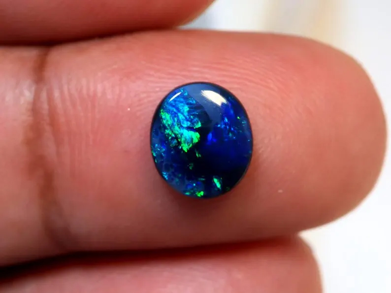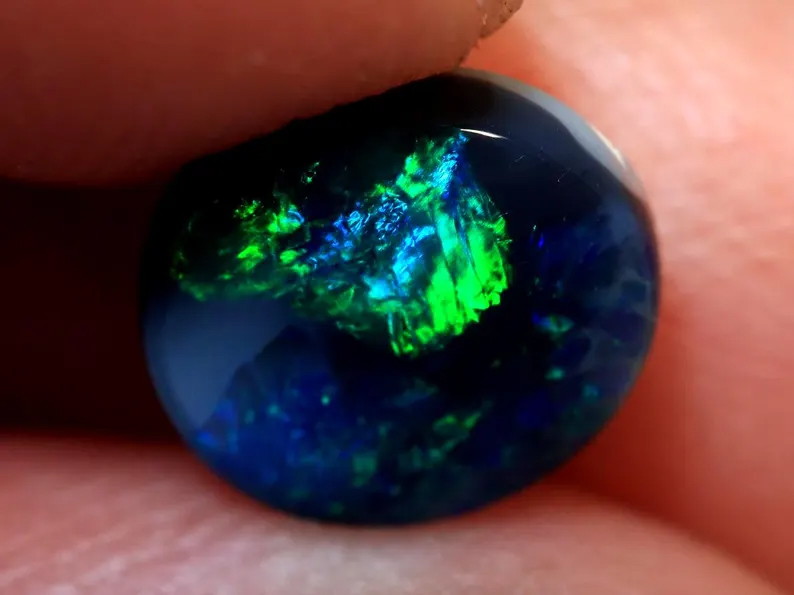 This is a natural Black Opal mined in Lightning Ridge and of very good quality with each opal cut and polished by hand giving the opal a beautiful finish.