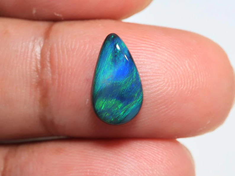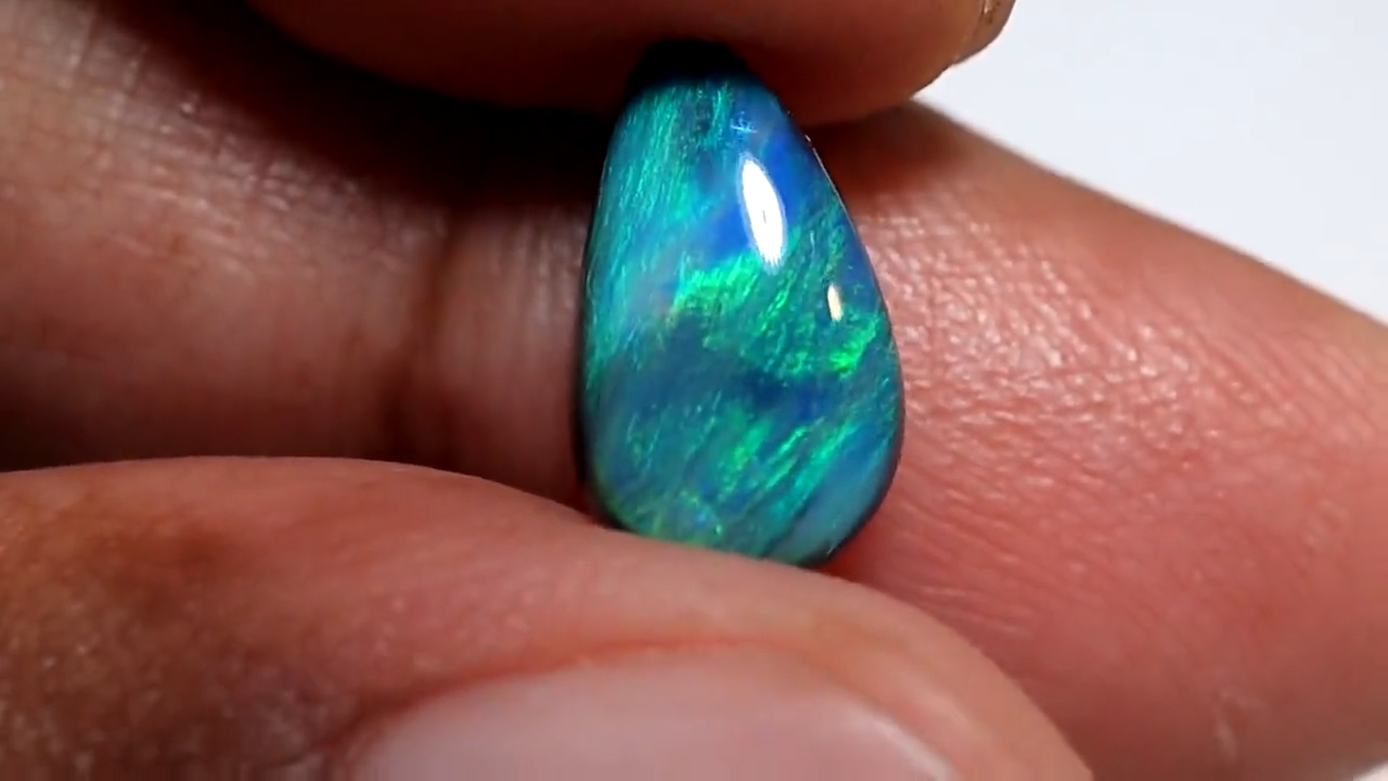 This is a natural Black Opal mined in Lightning ridge and of very good quality with each opal cut and polished by hand giving the opal a beautiful finish.