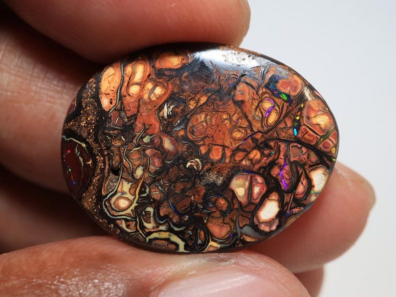 Boulder Opal is a unique type of precious opal where the opal is embedded within a sandstone boulder, unlike traditional ironstone boulder opals. This type of opal is known for its lighter colors, often featuring purple, blue, green, pink, or even rainbow hues. The sandstone backing is more fragile than the ironstone backing found in regular boulder opals.