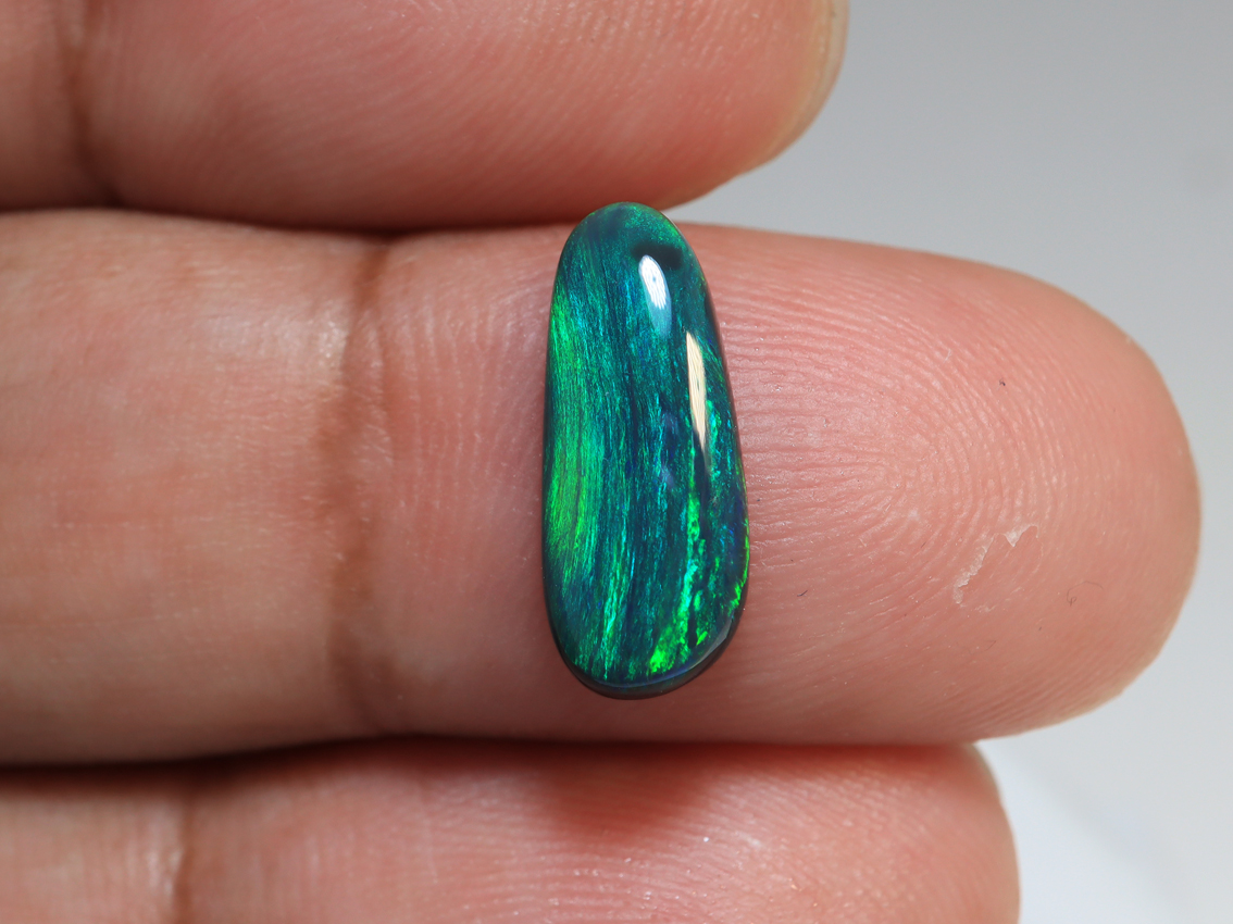 This is a natural Black Opal mined in Lightning ridge and of very good quality with each opal cut and polished by hand giving the opal a beautiful finish.