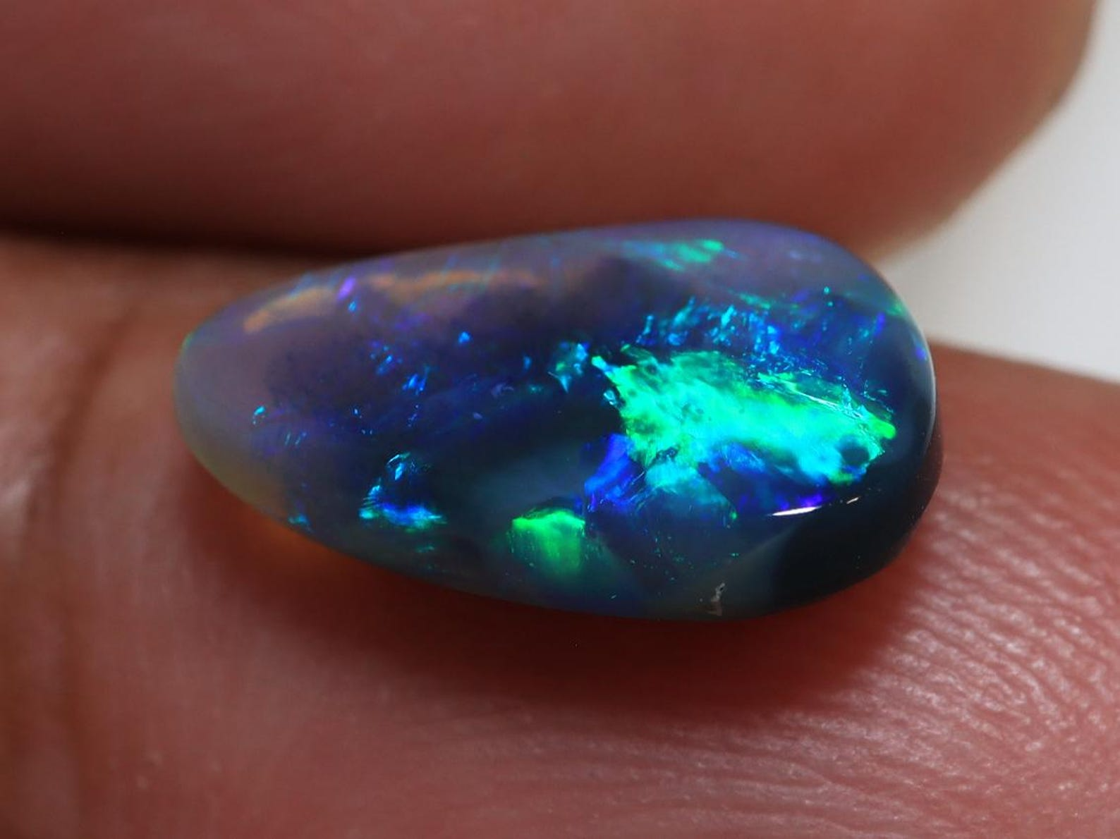This natural Black Opal was mined in Lightning Ridge and is of exceptional quality. Each stone is meticulously hand-cut and polished, resulting in a stunning, high-quality finish.Only opals with a body tone of N1 to N4 are classified as true Black Opals. These gems are incredibly rare—far rarer than diamonds—and no other gemstone can match the brilliance, fire, and unique colour patterns found in Australian Black Opals.