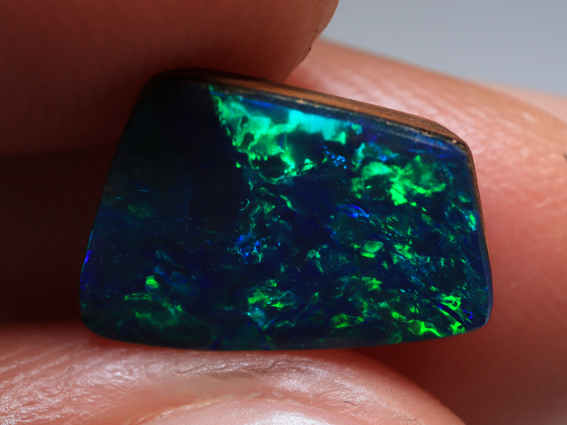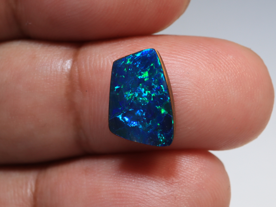 Boulder Doublet as the name suggests, is a thin layer of precious Opal cemented onto a backing, usually a piece of common Black Opal or Ironstone. They were originally created from Opal that was perhaps too thin to produce a solid stone. Opal doublets are a cheap and inexpensive way to buy a colourful piece of precious Opal without the cost of a solid Opal. Some of the patterns and the brightness of the Opal doublets is incredible.